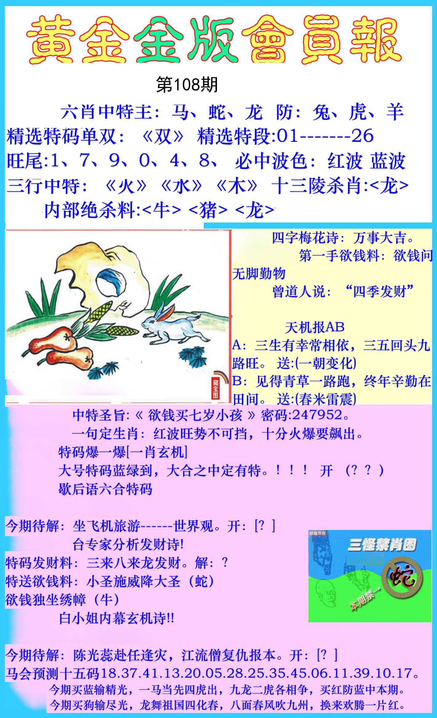 105期金牌⑥肖【狗鸡羊蛇兔猪】开:狗45 |