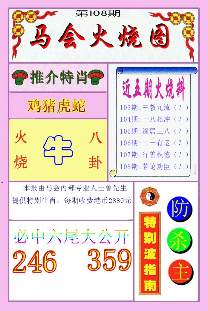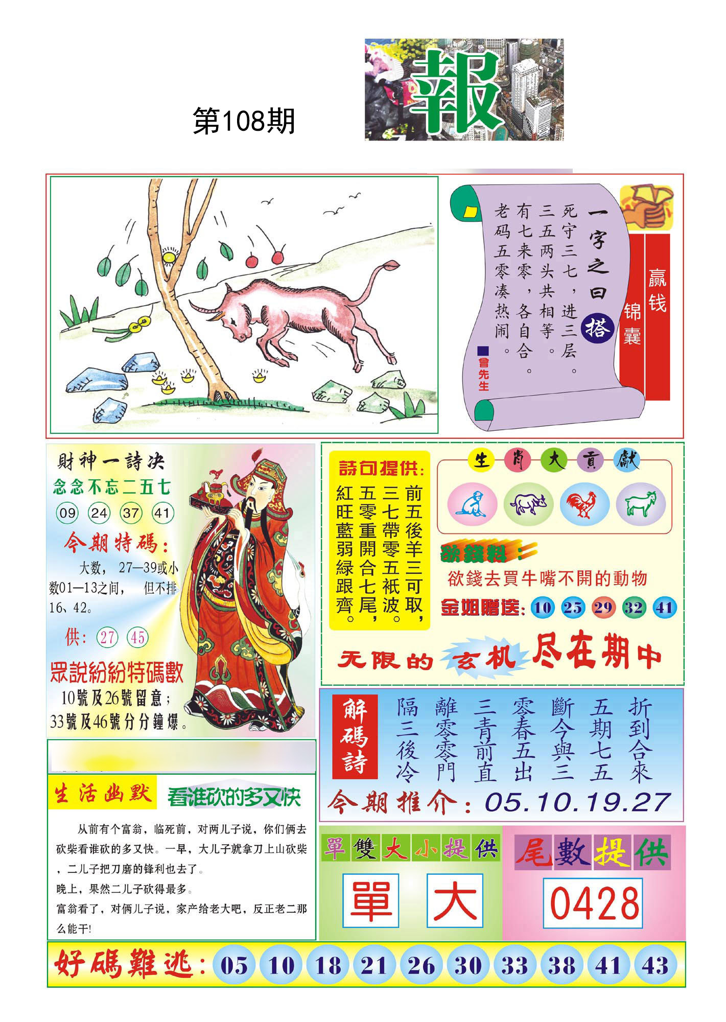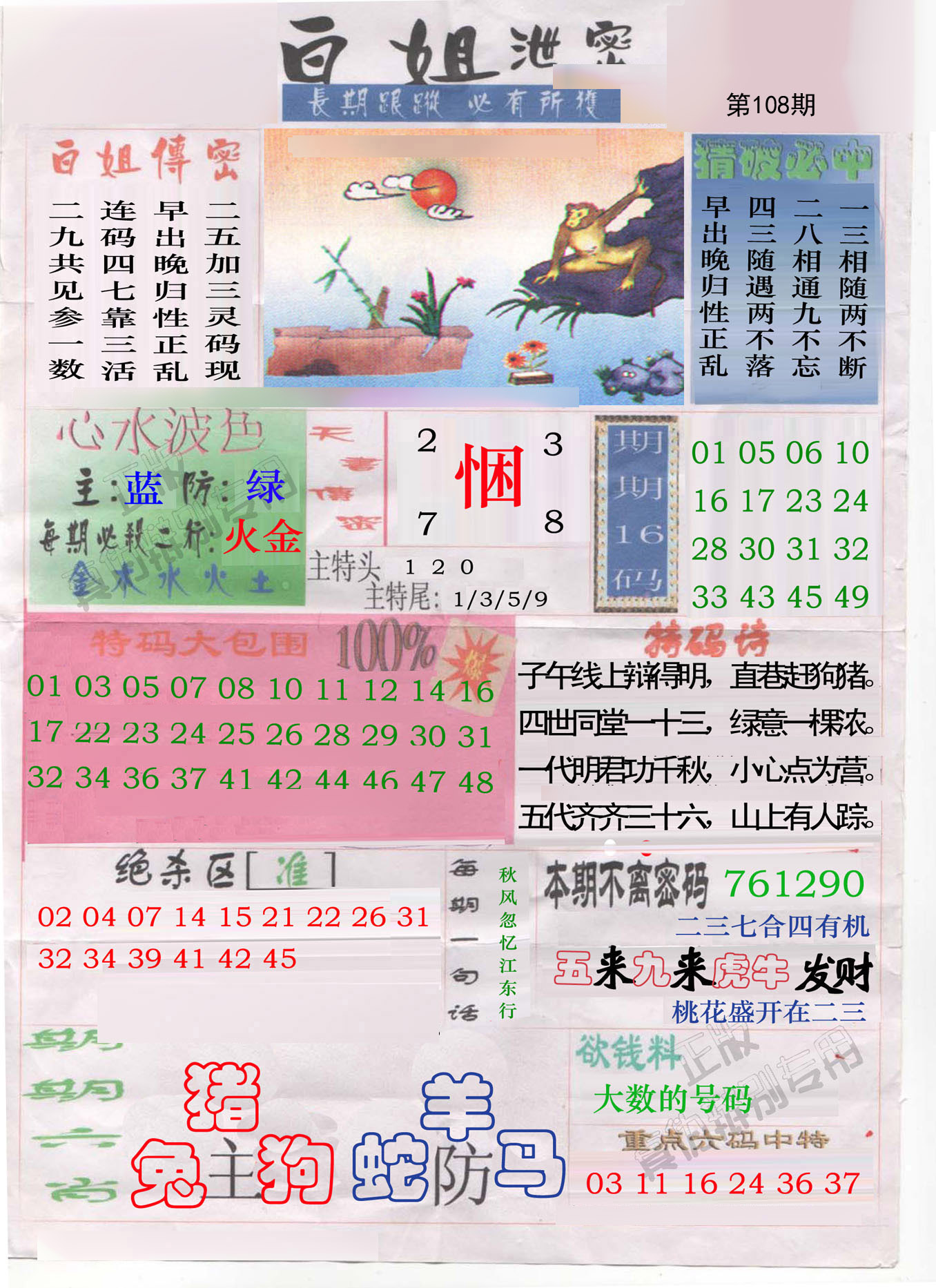 | 108期;绝杀【猪肖】绝杀【1尾】开:?00 |