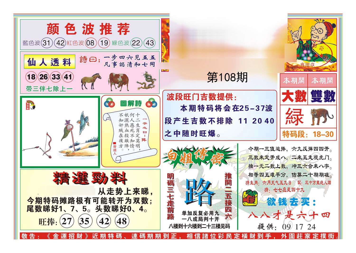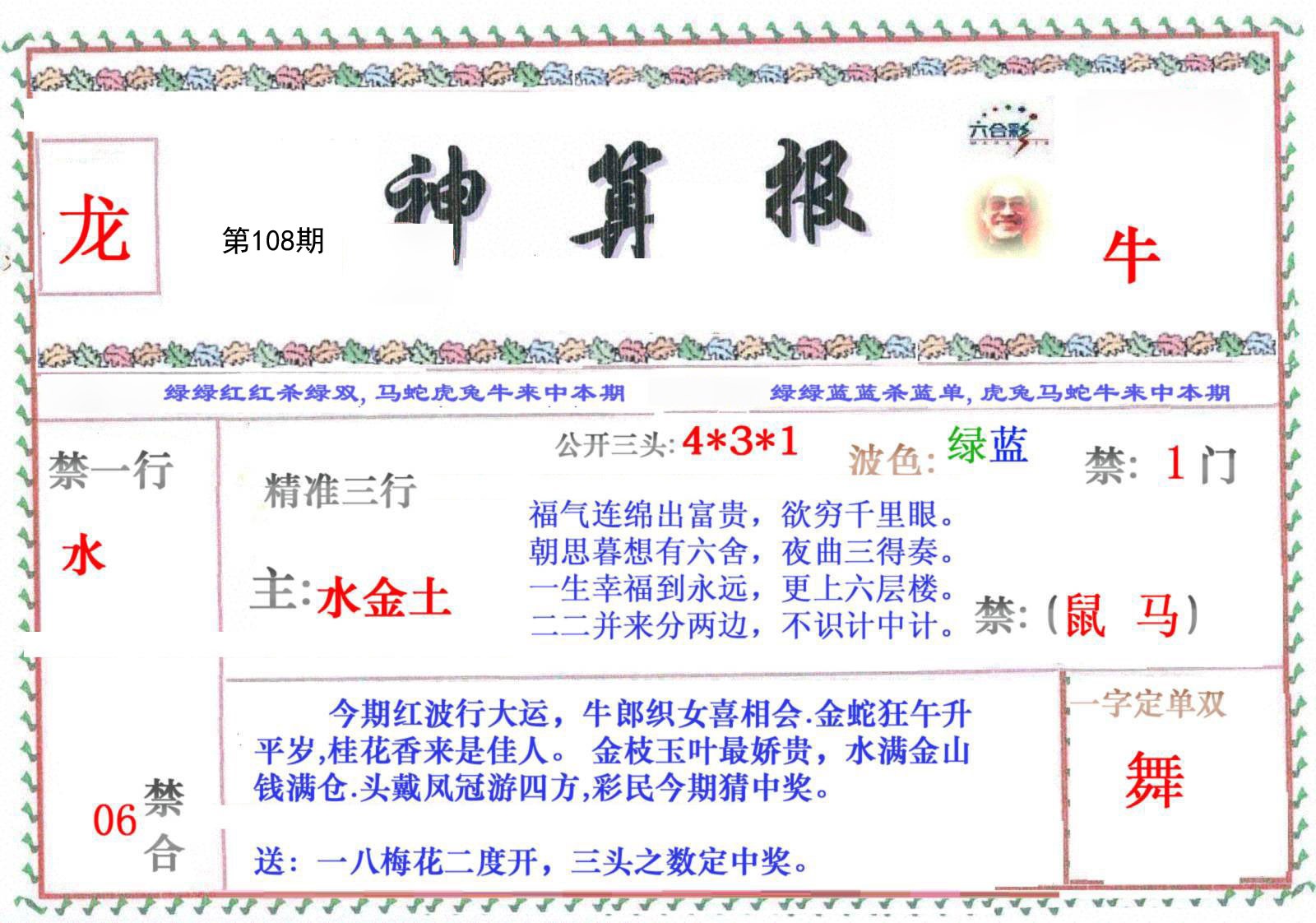 | 108期;绝杀【绿波】绝杀【2头】开:?00 |